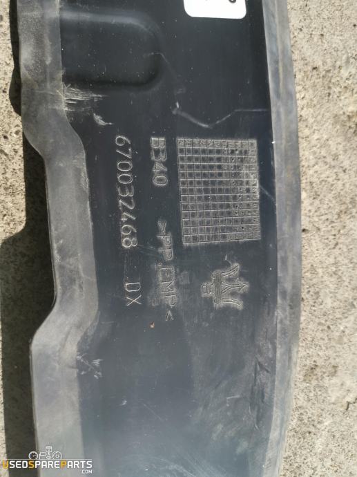 Obloga PVC za Maserati Levante 3.0 V6 D je del karoserije, ki služi kot zaščitna obloga za notranjost vozila. Ta del je pomemben za ohranjanje čistosti in zaščite notranjosti vozila pred prahom, vlago in drugimi zunanjimi dejavniki. Obloga PVC je izdelana iz visokokakovostnega materiala, ki zagotavlja dolgo življenjsko dobo in učinkovito zaščito.Letnik: 2017