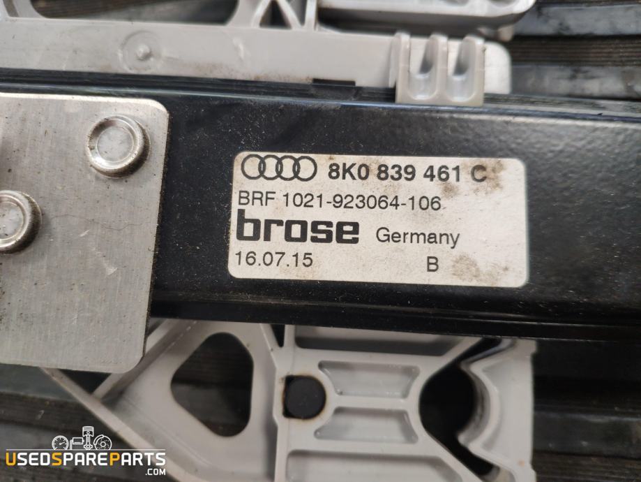 Mehanizem dviga stekla je mehanska sestavina, ki omogoča premikanje stekla gor in dol. Ta del je namenjen za zadnje levo steklo avtomobilov Audi A4 (B8) in S4 (B8) iz let 2011 do 2016. Del ima številko 8K0839461C in je primeren za modele z vin številko od 8K-9A097 612 naprej. Mehanična sestavina je lahko kontrolirana z motorjem ali ročnim krmilnikom.Znamka: Audi
