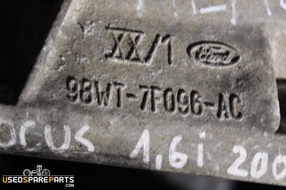 Menjalnik za Ford Focus 1.6i iz leta 2004, z delovnim številom 98WT7F096AC. Ta menjalnik je namenjen za vozila z motorjem 1.6 16V. Je delno avtomatski menjalnik, ki omogoča gladko preklapljanje med menjalnikovimi stopnjami. Uporablja se tudi v drugih modelih, kot je Ford Fiesta. Menjalnik je ključni del za zagotavljanje učinkovitega in varnega vožnja.Znamka: Ford