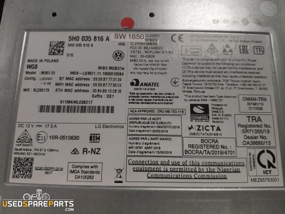 - 5H0035816A, MIB3, MQB37W, 5H0035816C, ...