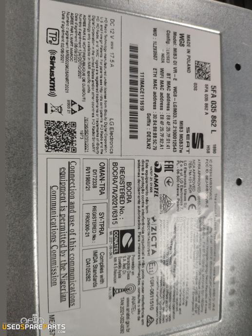 Multimedijski modul MIB3 za SEAT LEON IV iz leta 2021 je centralni kontrolni blok, ki upravlja z navigacijo, multimedijskimi funkcijami in drugimi elektronskimi sistem v vozilu. Deluje kot osrednji procesor, ki povezuje različne sisteme in omogoča uporabniku interakcijo z vozilom preko zaslonov in gumbov. Ta del je bistven za pravilno delovanje elektronskih sistemov v vozilu.