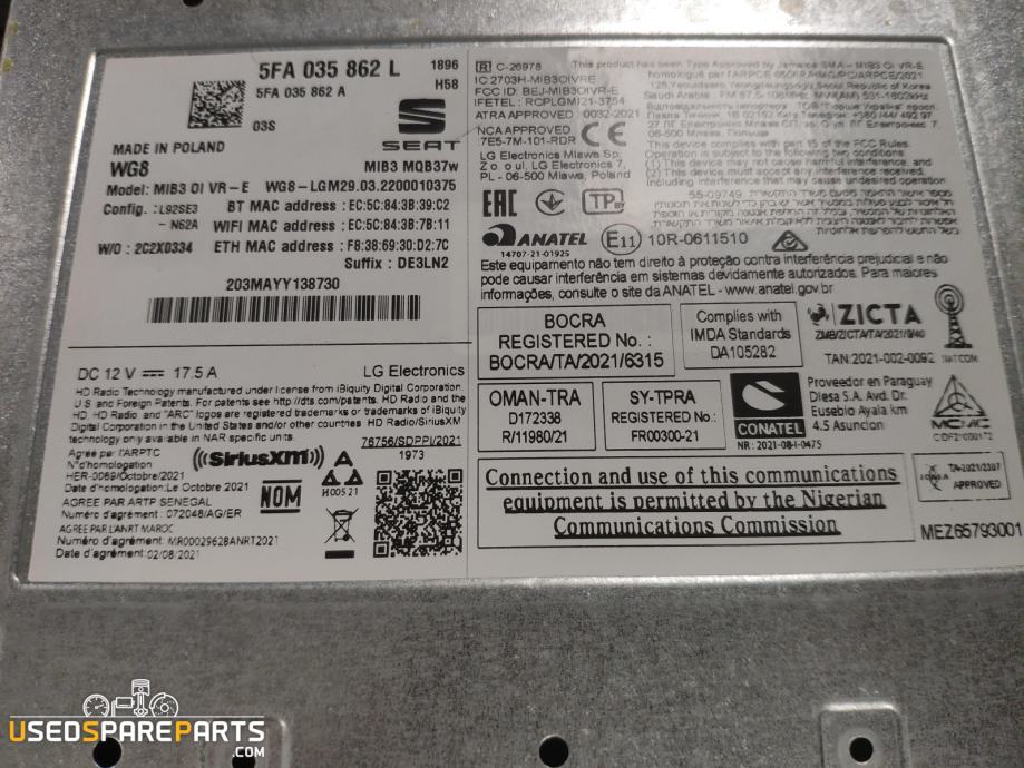 - 5FA035862L, 5FA035862A, MIB3, MQB37W, 5FA035862J, 5FA035862N, 5FA035862E, 5FA035862S, ...