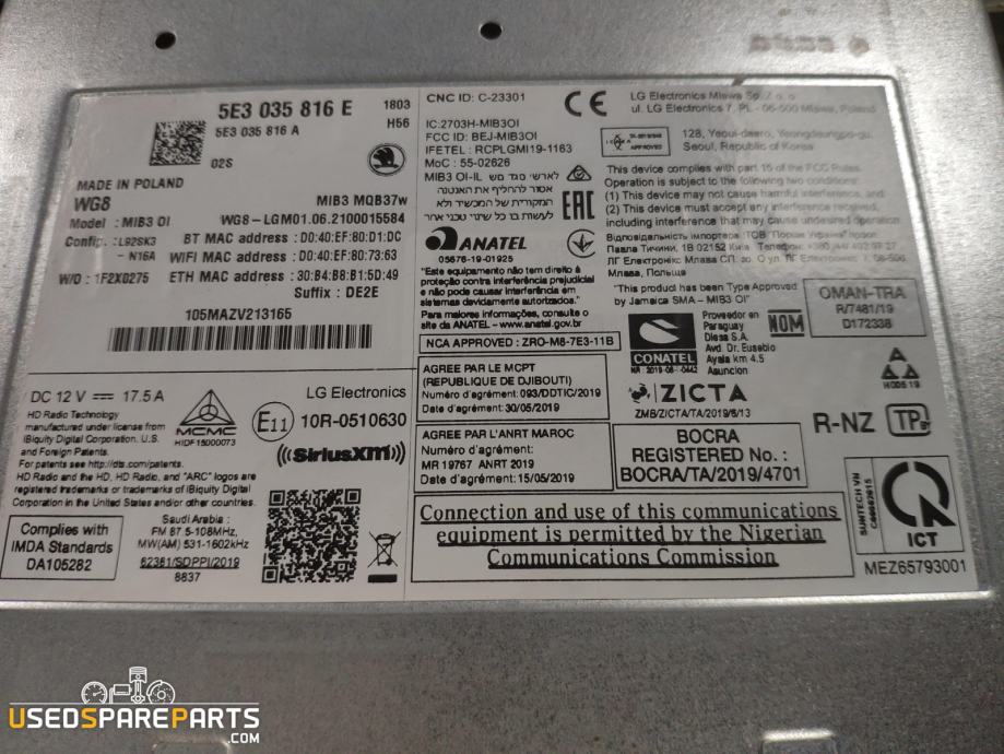 - 5E3035816E, 5E3035816A, MIB3MQB37W, 5E3035816C, ...