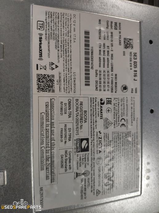 - 5E3035816J, 5E3035816A, MIB3MQB37W, 5E3035816C, ...