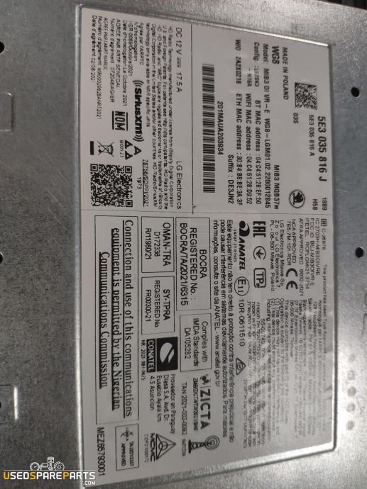- 5E3035816J, 5E3035816A, MIB3, MQB37W, 5E3035816C, ...