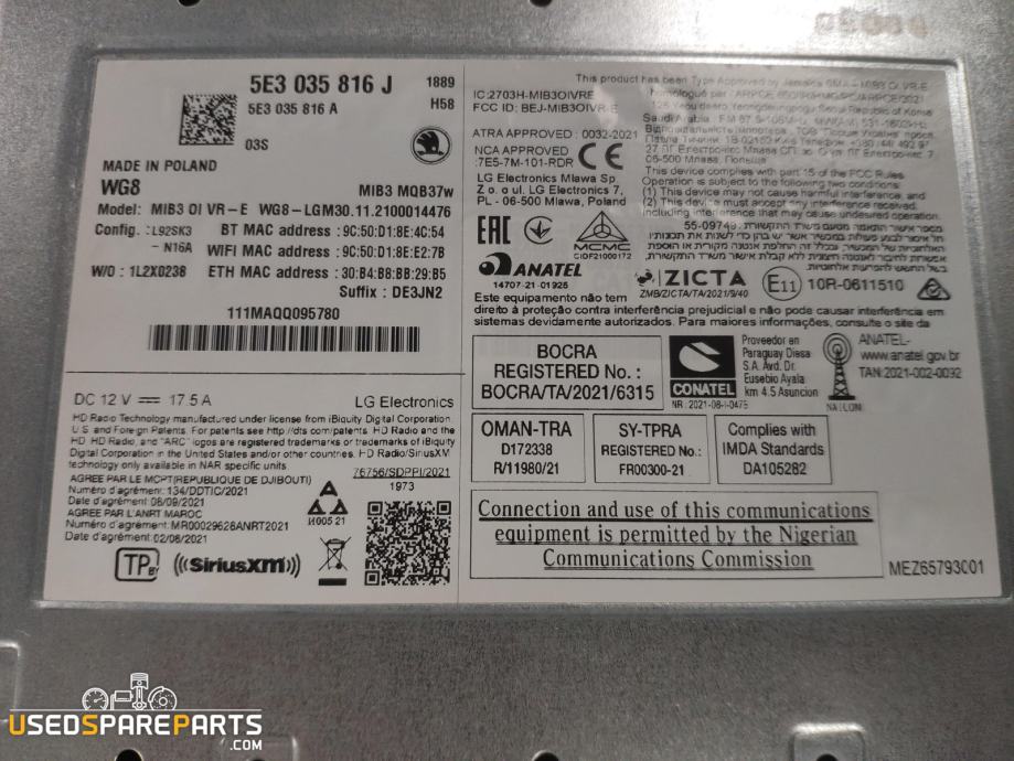 - 5E3035816J, 5E3035816A, MIB3, MQB37W, 5E3035816C, ...