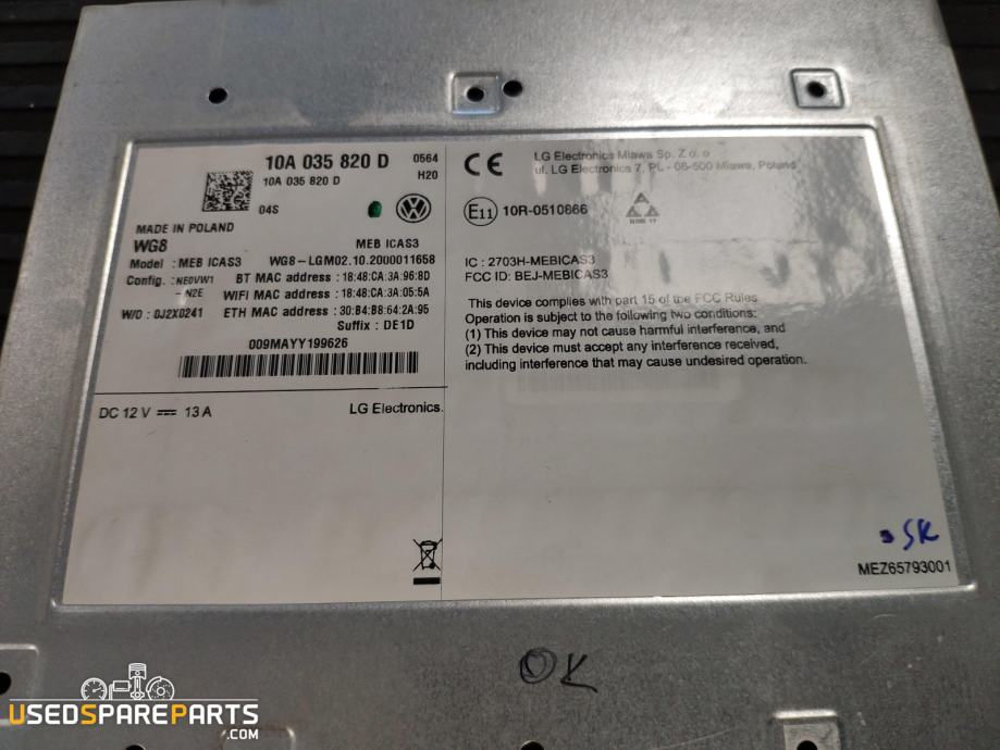 Modul MMI (Multimedijski Informacijski Sistem) je elektronski sistem, ki omogoča uporabnikom dostop do različnih funkcij, kot so navigacija, glasba, telefoniranje in drugi sistemi v vozilu. Ta modul je posebej zasnovan za Volkswagen ID3 iz leta 2019 in je del elektronske opreme vozila. Deluje v skladu s sistemom CAS3 in omogoča intuitivno uporabo različnih funkcij preko dotičnih zaslonov in glasovnega nadzora.