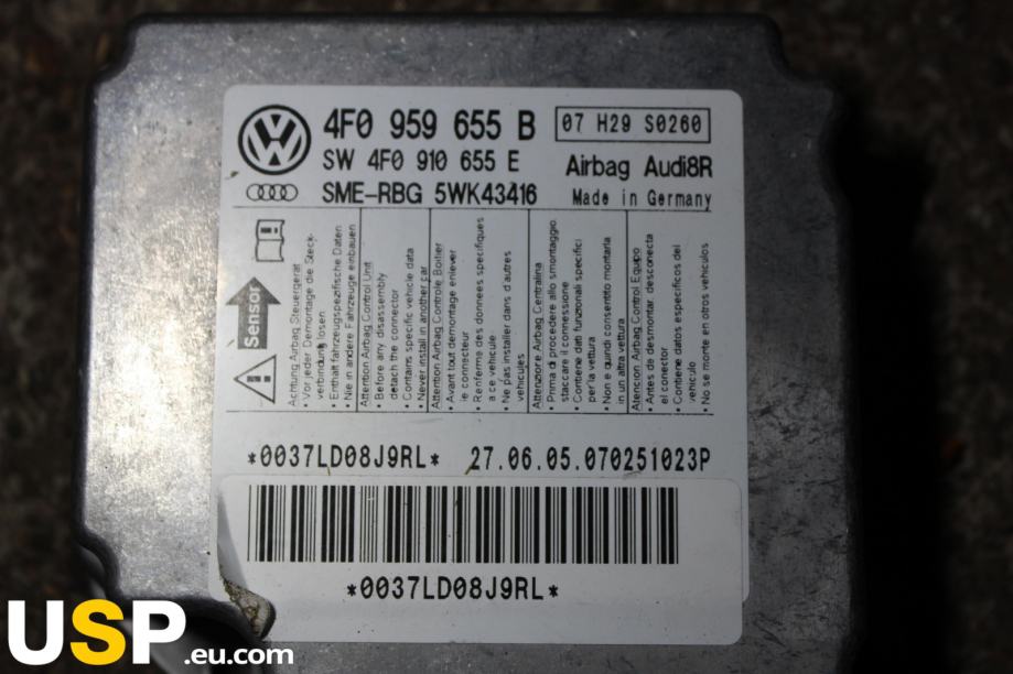 Kontrolni modul za zračne blazine je elektronska enota, ki nadzoruje delovanje zračnih blazin in ostalih varnostnih sistemov v vozilu. Ta modul je odgovoren za aktivacijo zračnih blazin v primeru trka in hkrati zbiranje podatkov o trku. V primeru okvare ali aktivacije zračnih blazin je potrebno modul ponovno nastaviti ali zamenjati.Znamka: Audi