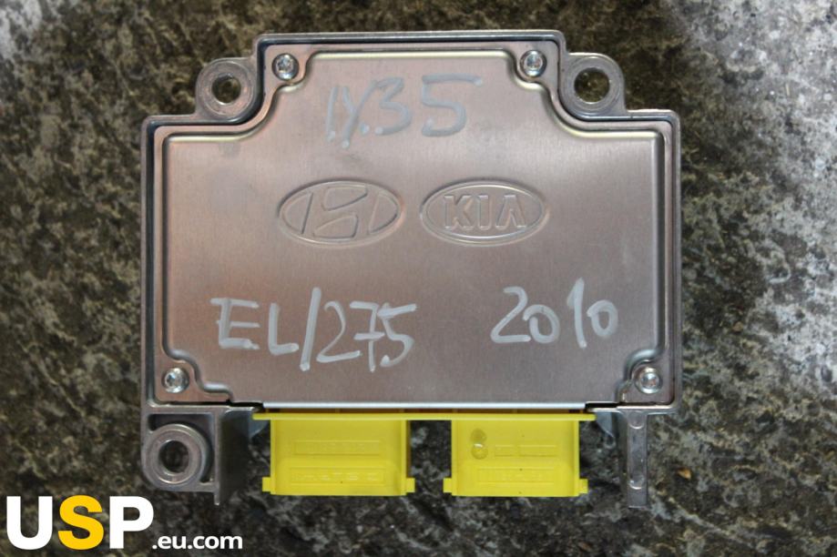 Kontrolni modul zračnih blazin je elektronski sistem, ki nadzoruje delovanje zračnih blazin v vozilu. Ta modul je namenjen za model Hyundai iX35 in je pomemben za varnost potnikov. V primeru trka ali aktivacije zračnih blazin se v modulu shranjujejo podatki o nesreči, ki jih je mogoče kasneje izbrisati. Modul je ključnega pomena za zagotavljanje pravilnega delovanja sistema zračnih blazin.Znamka: Hyundai