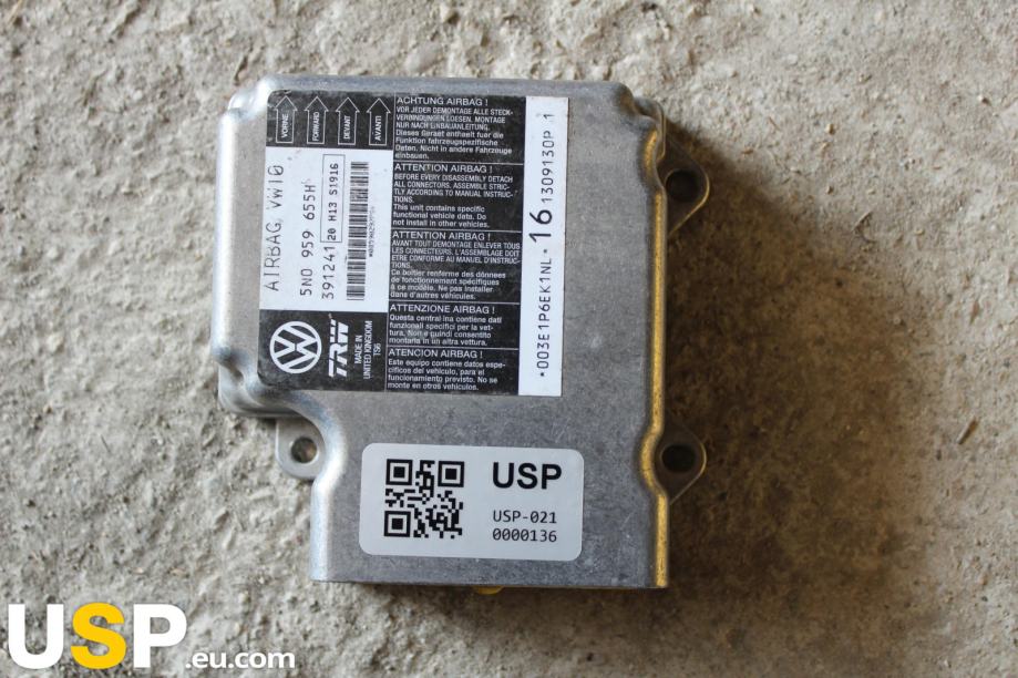 Kontrolni modul za zračne blazine je ključni del varnostnega sistema v vozilu. Nadzira delovanje zračnih blazin in ostalih varnostnih sistemov ter spremlja podatke, ki jih pridobivajo senzorji. V primeru napake lahko prikaže svetilko na instrumentni plošči in zahteva strokovno preverbo ali zamenjavo.Znamka: Volkswagen