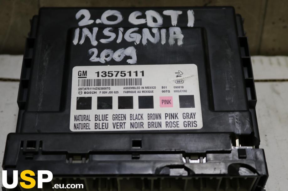 Centralni kontrolni modul je elektronski del, ki nadzoruje in koordinira različne funkcije v vozilu, kot so osvetlitev, klimatska naprava in varnostne funkcije. Namenjen je vozilom Opel Insignia in Vauxhall Insignia. Modul z delovnim številom 13575111 je ključni del za zagotavljanje pravilnega delovanja elektronskih sistemov v vozilu.Znamka: Opel
