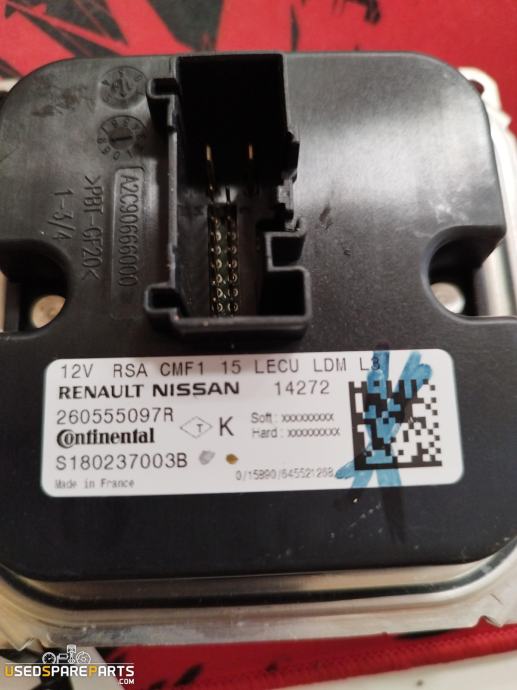 Modul z delovno številko 260555097R je LED modul za sprednjo luč, ki se uporablja v vozilih Renault in Nissan, med drugim v modelu Renault Kadjar z dizelskim motorjem 1.5 dCi. Gre za elektronski del, ki upravlja LED osvetlitev sprednjih žarometov. Po zamenjavi modula je lahko potrebna ponovna kodiracija za pravilno delovanje. Modul je izdelan s strani proizvajalca Continental in je ključnega pomena za pravilno delovanje svetlobnega sistema vozila, kar vpliva na varnost in vidljivost med vožnjo.