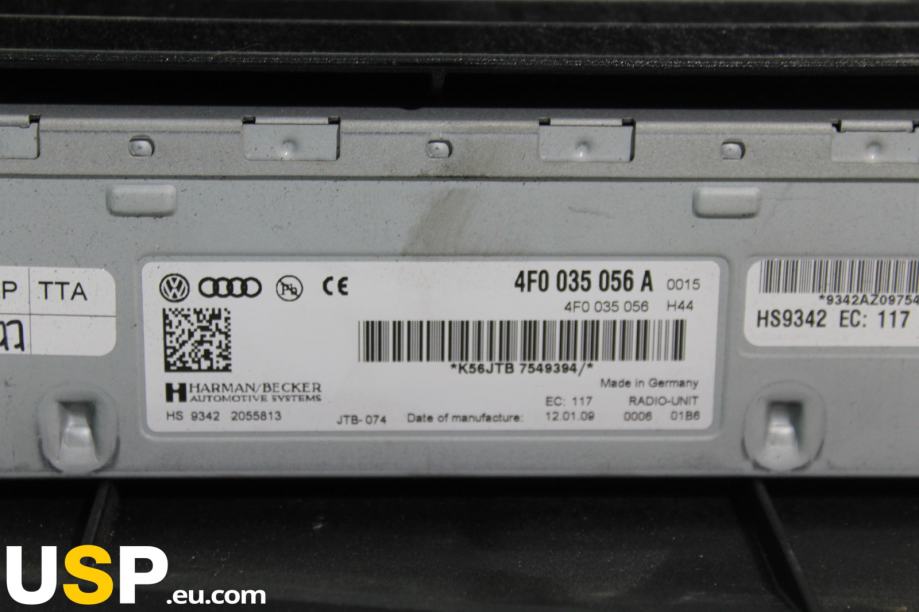 Radijski modul 4F0035056A je komponenta sistema za avdio in navigacijo v avtomobilih Audi. Izdelan je pod blagovno znamko Harman/Becker in je namenjen za uporabo v modelih A4, A5 in A6. Ta modul vsebuje funkcije radijskega sprejemnika in ojačevalnika, ki omogočajo prijetno poslušanje glasbe med vožnjo. Je ključni del avdio sistema, ki zagotavlja kvalitetno reprodukcijo zvoka.Znamka: Audi