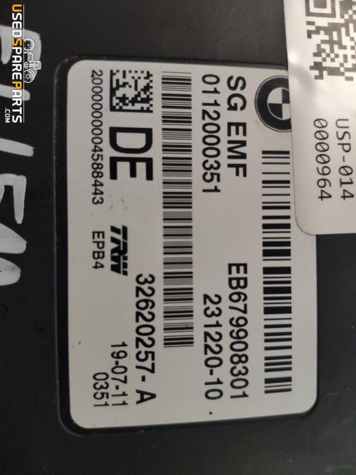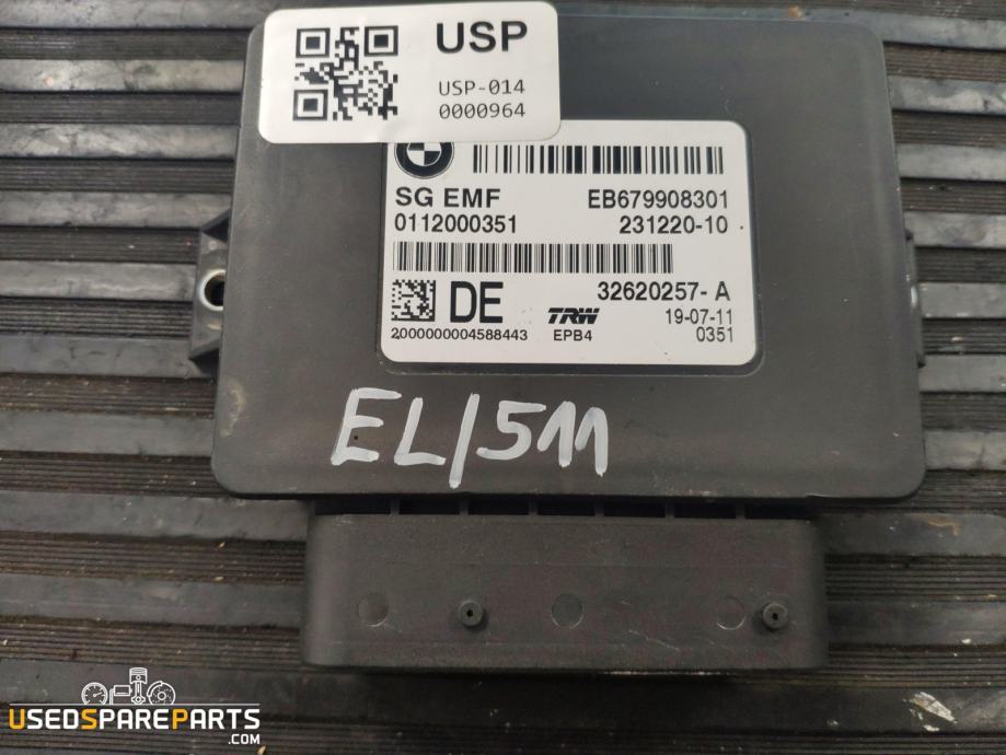 Modul za ročno zavorno je elektronska komponenta, ki nadzoruje delovanje ročne zavore v vozilu. Ta del je bistven za varno in pravilno delovanje zavornega sistema. V primeru okvare ali poškodbe modula lahko pride do težav pri uporabi ročne zavore, kar lahko vodi do nevarnih situacij na cesti. Zamenjava tega dela je lahko potrebna, če se pojavijo težave z delovanjem ročne zavore. Del je primeren za vozila BMW F11 5 Touring iz leta 2012.Znamka: BMW