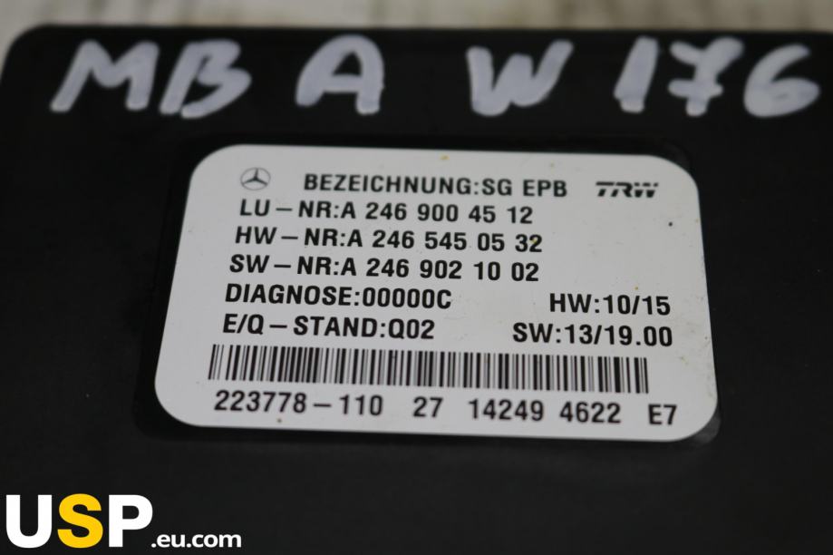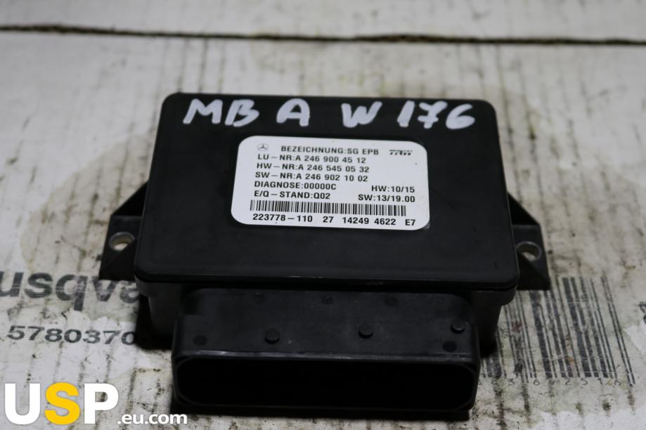 Kontrolni modul ročne zavore je elektronski del, ki nadzoruje delovanje ročne zavore v vozilu. Namenjen je za Mercedes-Benz A-klase (W176), z delovnim številom A2469004512. Ta modul je odgovoren za pravilno delovanje ročne zavore, kar je pomembno za varnost in stabilnost vozila.Znamka: Mercedes-Benz