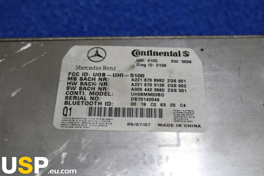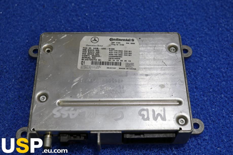 Kontrolni modul za mobilno telefonijo je del sistema za povezavo mobilnega telefona z avtomobilom. Omogoča uporabo funkcij, kot so deljenje zvoka in upravljanje klicov preko avtomobilovega sistema. Namenjen je za model S-Klasa W221 in je del elektronske opreme avtomobila.Znamka: Mercedes-Benz