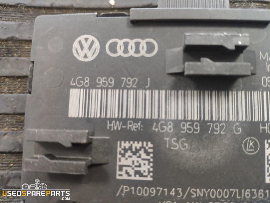 Modul za kontrolno vrata je elektronski komponent, ki nadzoruje delovanje vrata in okenskih mehanizmov v vozilu. Ta modul je namenjen za uporabo v vozilih Audi A6 (4G) iz leta 2014 in kasneje. Deluje kot osrednji kontrolni sistem za vrata in okna, omogoča njihovo odpiranje in zapiranje ter nadzoruje njihovo delovanje. Modul ima oznako 4G8959792J in je kompatibilen z vozili Audi A6 (4G).Znamka: Audi