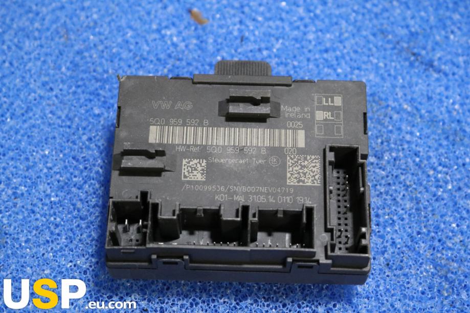 Kontrolni modul vrat je elektronski del, ki nadzoruje funkcije vrat v vozilu. Ta modul je namenjen za Volkswagen Passat B8 in je označen s kataloško številko 5Q0959592B. Omogoča upravljanje z vratnimi funkcijami, kot so odpiranje in zapiranje vrat, ter lahko vključuje tudi druge funkcije, kot so elektronski zaklepki ali senzorji za varnost.Znamka: Volkswagen