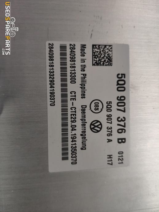 Kontrolni modul za vzmetenje je elektronski sistem, ki nadzoruje in prilagaja vzmetenje vozila glede na različne cestne pogoje. Ta modul omogoča optimalno prilagoditev vzmetenja za boljšo udobnost in stabilnost vozila. Uporablja se v vozilih z naprednim sistemom vzmetenja, kot je DCC (Dynamic Chassis Control).Znamka: Volkswagen