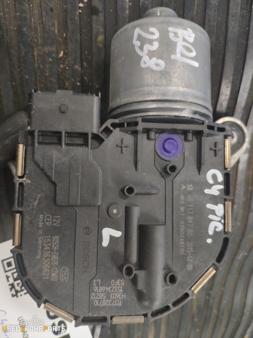 Motorček brisalcev spredaj je električni motor, ki poganja brisalce vetrobranskega stekla v vozilu Citroen C4 Picasso. Deluje na električno energijo in omogoča učinkovito čiščenje stekla pred vozilom. Ta del je bistven za varnost vožnje, saj zagotavlja dobro vidljivost vozniku. Delovno številko 9811384780 ima ta del pri različnih dobaviteljih, kot so BOSCH, in je primeren za modele Citroen C4 Picasso iz leta 2010 in kasneje.