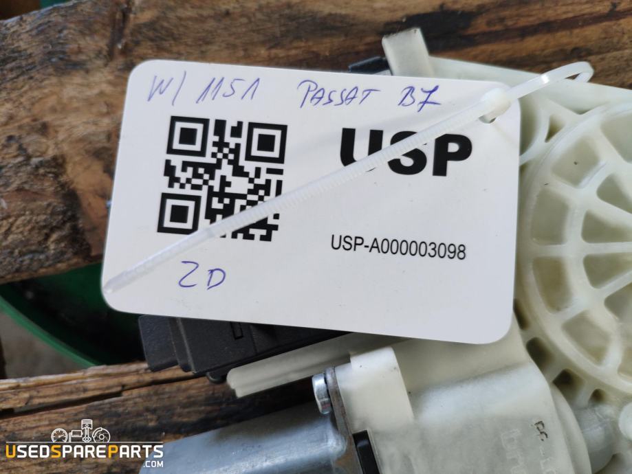 Motorček dviga stekla je električni del, ki omogoča avtomatsko dviganje in spuščanje zadnjega desnega stekla v vozilu Volkswagen Passat B7. Sestavljen je iz elektromotorja in povezanih komponent, ki zagotavljajo gladko in zanesljivo delovanje okna. Namenjen je namestitvi v zadnja vrata, kjer skrbi za udobje in varnost potnikov. Del je ključnega pomena za pravilno delovanje električnih oken v vozilu[1][2].Znamka: Volkswagen