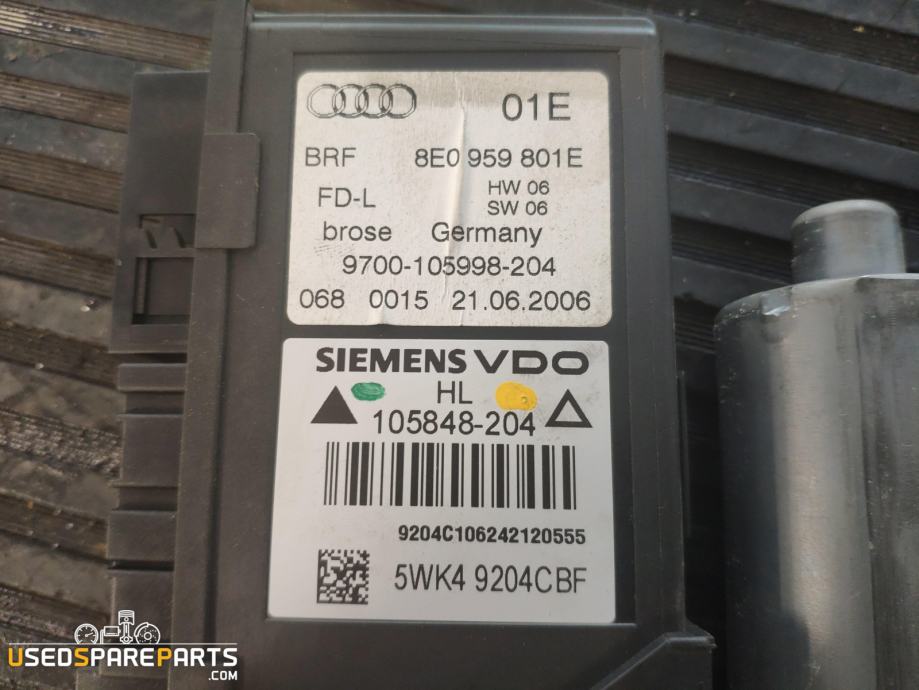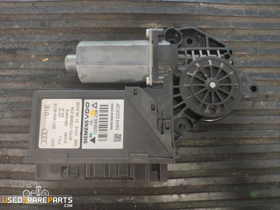 Motorček, ki zagotavlja silo za odpiranje in zapiranje stekla na vozilu. Uporablja se za zadnje levo steklo na modelu Audi A4 (B6) iz leta 2004. Delovno številko ima 8E0959801E. Ta del je pomemben za pravilno delovanje sistema za dvig stekla in zagotavlja udobno upravljanje z vozilom.Znamka: Audi