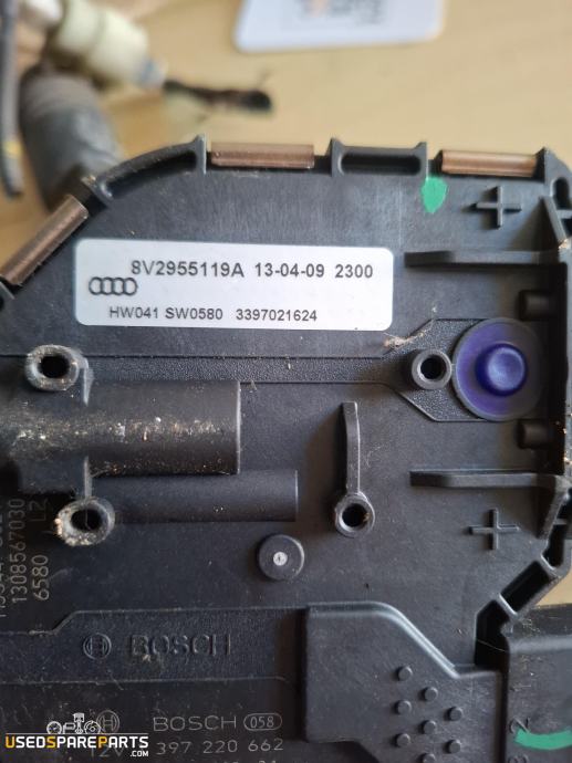 Motorček sprednjih brisalcev je del sistema za čiščenje stekel, ki omogoča pravilno delovanje brisalcev. Ta del je namenjen za uporabo v vozilih Audi A3 in S3 8V. Deluje tako, da prenaša gibanje od elektromotorja do brisalcev, kar omogoča učinkovito čiščenje stekel. Motorček sprednjih brisalcev je pomemben del za varnost in udobje vožnje.Znamka: Audi