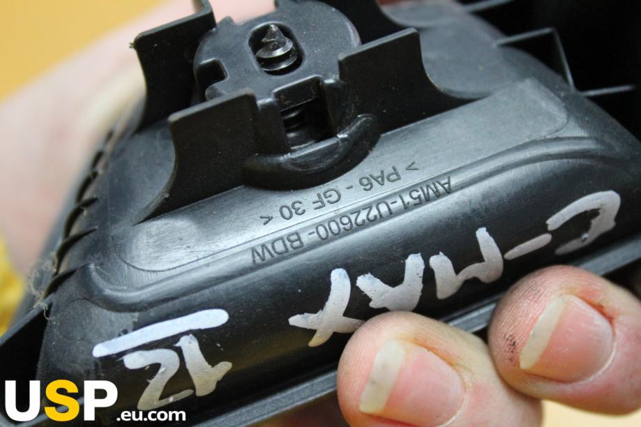 Notranja ročica zadnje vrata za Ford C-MAX II, ki se uporablja za odpiranje in zapiranje zadnjih vrat iz notranjosti vozila. Del je izdelan za zagotavljanje udobnega in varnega dostopa do zadnjih vrat. Pripada katalogu z delovnim številom AM51U22600BDW.Znamka: Ford