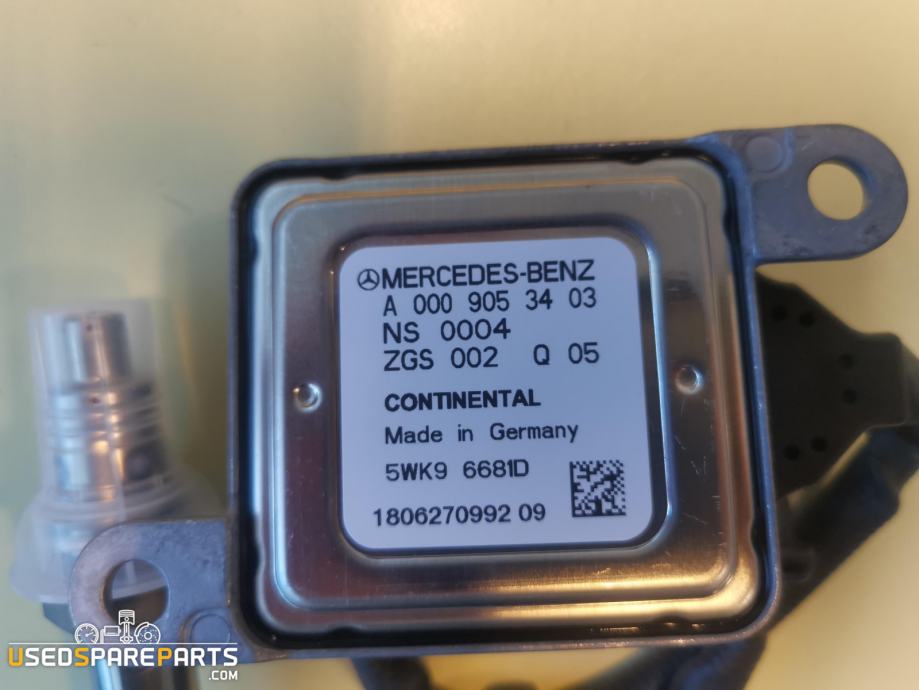 Senzor NOx je del izpušnega sistema, ki spremlja količino dušikovih oksidov v izpušnih plinih. Uporablja se za nadzor in regulacijo emisij, zlasti pri vozilih z tehnologijo SCR (Selective Catalytic Reduction). Ta senzor je ključnega pomena za zagotavljanje, da vozilo deluje znotraj dovoljenih mej emisij. Deluje v kombinaciji z drugimi komponentami, kot so urejevalnik in rezervoar za AdBlue.Znamka: Mercedes-Benz