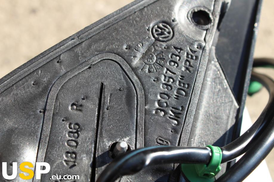 Zunanje ogledalo za desno stran vozila VW Passat. Kataloška številka: 3C0857934. To ogledalo je namenjeno za vozila Passat, ki so opremljena z zunanjimi ogledali. Je pomembno za varnost in vidljivost med vožnjo. Ogledalo je lahko delno prilagodljivo in se pritrdi na stranski del vozila.Znamka: Volkswagen