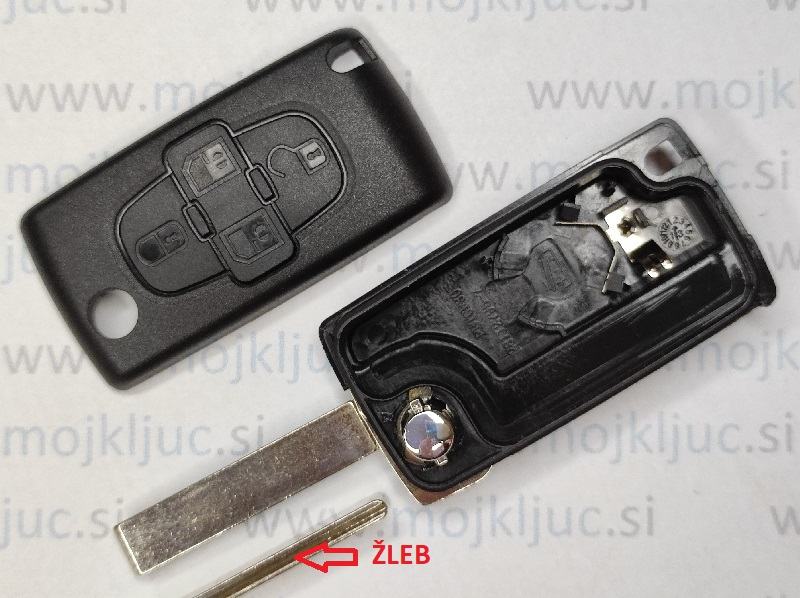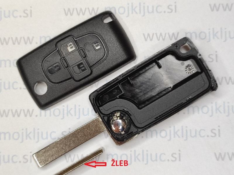 Prodam zložljivo ohišje za ključ (4 tipke) primerno za avtomobile Peugeot 1007, Citroen C8 in druge. Možna dobava v 4. različnih izvedbah (glej www.mojkljuc.si).