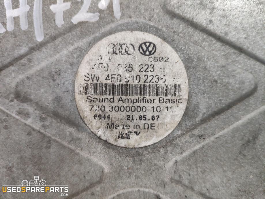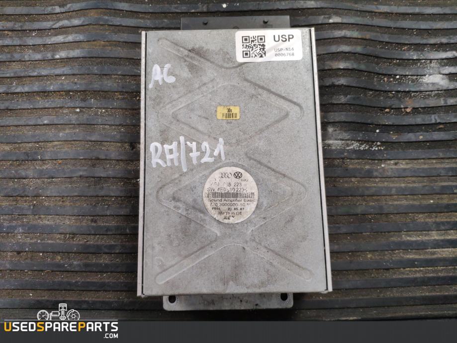 Ojačevalec je del avtomobilske elektronike, ki služi kot ojačevalnik signalov v sistemu. V primeru Audi A6 4F (2006) se uporablja za ojačevanje signalov v multimedijskem sistemu MMI (Multi Media Interface). Ojačevalec je bistven del sistema, ki omogoča pravilno delovanje različnih funkcij, kot so navigacija, klimatska kontrola in drugi elektronski dodatki. Če ojačevalec ne deluje pravilno, lahko to vodi do težav z delovanjem sistema MMI.Znamka: Audi