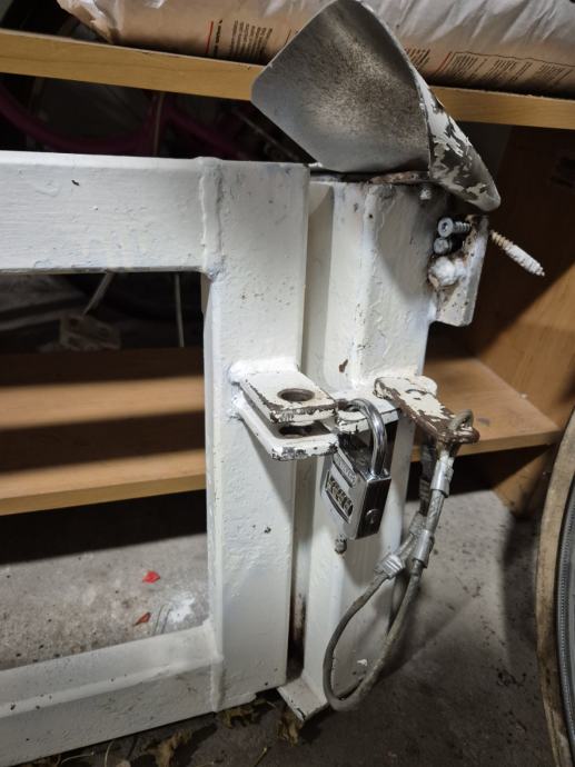 Prodam popolnoma delujočo, železno parkirno zapornico dolžine cca 3m. Zapira se na obešanko. Montira se neposredno na steno.