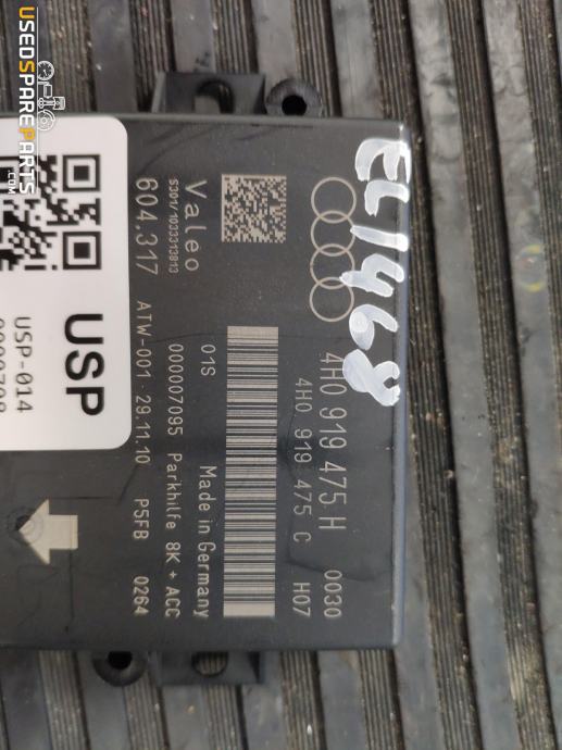 PDC modul s kataloško številko 4H0919475H je ključna elektronska komponenta za sistem za pomoč pri parkiranju v vozilih Audi A6 in A8. Ta enota nadzoruje in obdeluje podatke iz parkirnih senzorjev, omogoča natančno zaznavanje ovir okoli vozila med parkiranjem. Modul je združljiv z modeli A6 in A8, proizvedenimi do 30.5.2011, in ne vključuje S-Line paketa. Nameščen je v električni sistem vozila in komunicira z drugimi elektronskimi komponentami za zagotavljanje natančnih povratnih informacij vozniku. Ta originalni Audi nadomestni del zagotavlja optimalno delovanje sistema za pomoč pri parkiranju in je ključen za varno in natančno manevriranje vozila v tesnih prostorih.Znamka: Audi