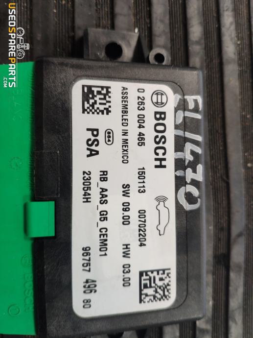 PDC modul s kataloško številko 0263004465 je elektronska kontrolna enota za sistem za pomoč pri parkiranju. Nameščen je v različnih modelih vozil Citroen in Peugeot, kot so C4, 208, 308 in 2008. Ta modul obdeluje signale iz parkirnih senzorjev in upravlja zvočna ali vizualna opozorila za voznika. Omogoča natančno zaznavanje ovir med parkiranjem in manevriranjem. Modul je ključni del sistema za pomoč pri parkiranju in zagotavlja varnejše in lažje parkiranje. Običajno je nameščen v zadnjem delu vozila in je povezan s parkirnimi senzorji ter z glavnim računalnikom vozila. V primeru okvare lahko povzroči nedelovanje sistema za pomoč pri parkiranju.Znamka: Citroen