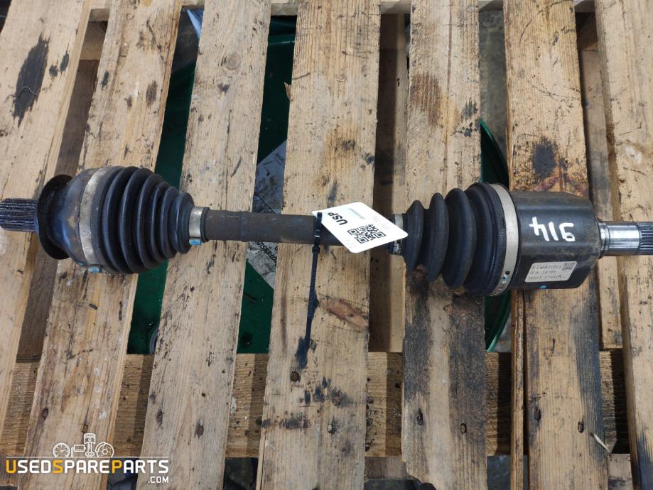 Polos je ključni del sprednjega kolesnega pogona, ki prenaša navor iz menjalnika na sprednje kolo. Ta specifična polos je namenjena sprednji levi strani Mazde CX-5 z dizelskim motorjem 2.2 D. Polos omogoča prenos moči in hkrati omogoča gibanje vzmetenja in krmiljenja, kar je bistveno za stabilnost in vodljivost vozila. Zaradi svoje funkcije je del sprednje osi in mehanizma krmiljenja, kar vpliva na varno in učinkovito vožnjo ter nadzor nad vozilom.Znamka: Mazda