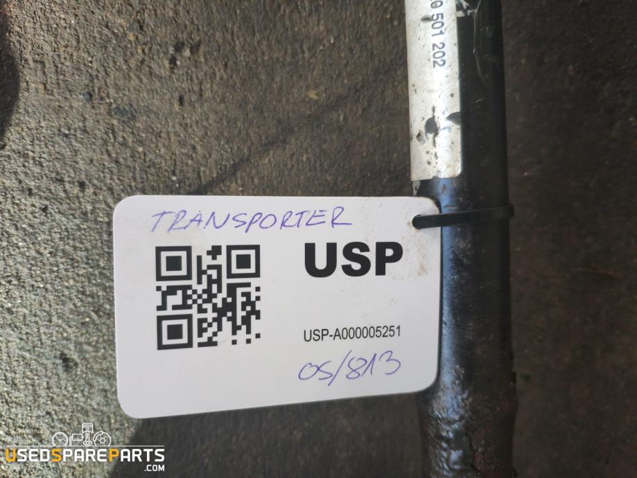 Zadnji desni pogonski gred z univerzalnimi spojkami za Volkswagen Transporter T5 4Motion od leta 2010 do 2015, od šasije št. WV1ZZZ7HZA-200001 ali št. WV1ZZZ7JZA-200001. Dolžina: 745mm. Zunanji zob na strani kolesa: 38. Premer na strani kolesa: 94mm. Premer na strani škatle: 100mm. Originalna referenca OEM: 7E0501202.