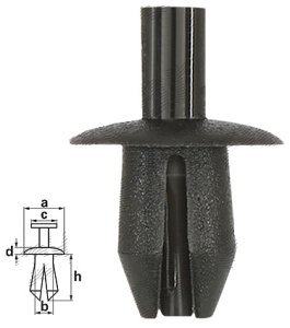 Pritrdilni set sponk za vozila Citroen, Pegueot, Renault. Dimenzije: A 15,8 B 7,9 C 4,9, d 2,4, H 12,7 mm. Pakiranje 10 kosov.