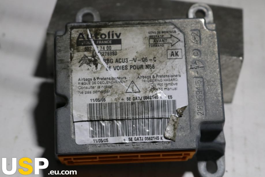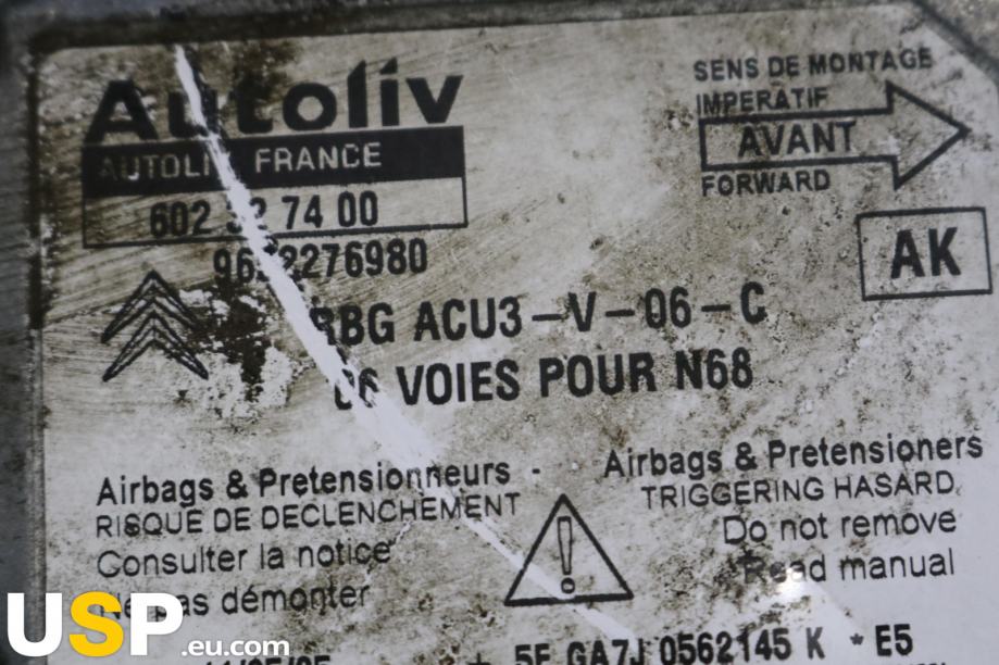 SKrmilnik zračnih blazin je elektronski del, ki nadzoruje sistem zračnih blazin v vozilu. Ta del, označen z ID-jem 602327400, je namenjen za Citroen Xsara Picasso in je ključnega pomena za varnost potnikov. V primeru trka shranjuje podatke o nesreči in ga je mogoče ponovno nastaviti ali izbrisati. Del je pomemben za pravilno delovanje sistema zračnih blazin.Znamka: Citroen