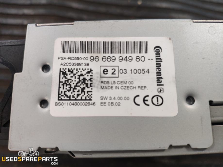 Radijski sistem za vozila Citroen C4 II in Peugeot 508 SW, ki vključuje CD predvajalnik in podporo za več funkcij. Delovni številka: 9666994980. Sistem je primeren za vozila iz leta 2012 in kasneje. Podporo za uporabo v vozilih z različnimi funkcijami, kot so predvajanje CD-jev, radijski sprejemnik in drugo.