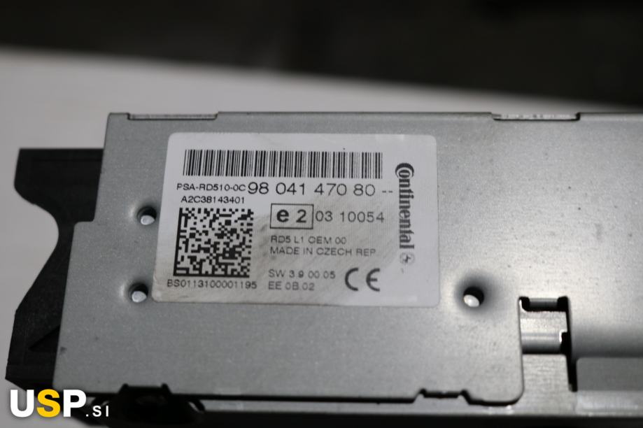 Radijska enota za Citroen C4 in C4 Grand Picasso, ki vključuje funkcije CD, DVD in GPS. Delovni del z identifikacijsko številko 9804147080. Uporablja se za predvajanje glasbe in navigacijo v vozilu.Znamka: Citroen