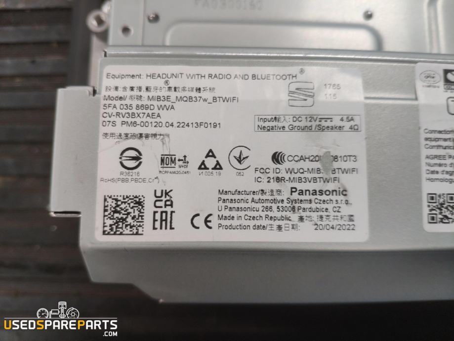 - 5FA035869D, MIB3E, MQB37W, BTWIFI, CVRV3BX7AEA, WVA, ...