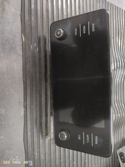 Zaslon za radijsko glavno enoto MIB3E, ki se uporablja v vozilih Skoda Kamiq in Scala, izdelanih od leta 2019. Del ima oznako 654035869D in je del infotainment sistema, ki omogoča uporabnikom dostop do različnih funkcij, kot so navigacija, glasba in drugi podatki. Zaslon je pomemben del sistema in zagotavlja jasen in čitljiv prikaz informacij.
