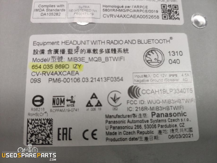 - 654035869D, IZY, MIB3E, MQB, BTWIFI, CV, RV4AXCAEA, ...