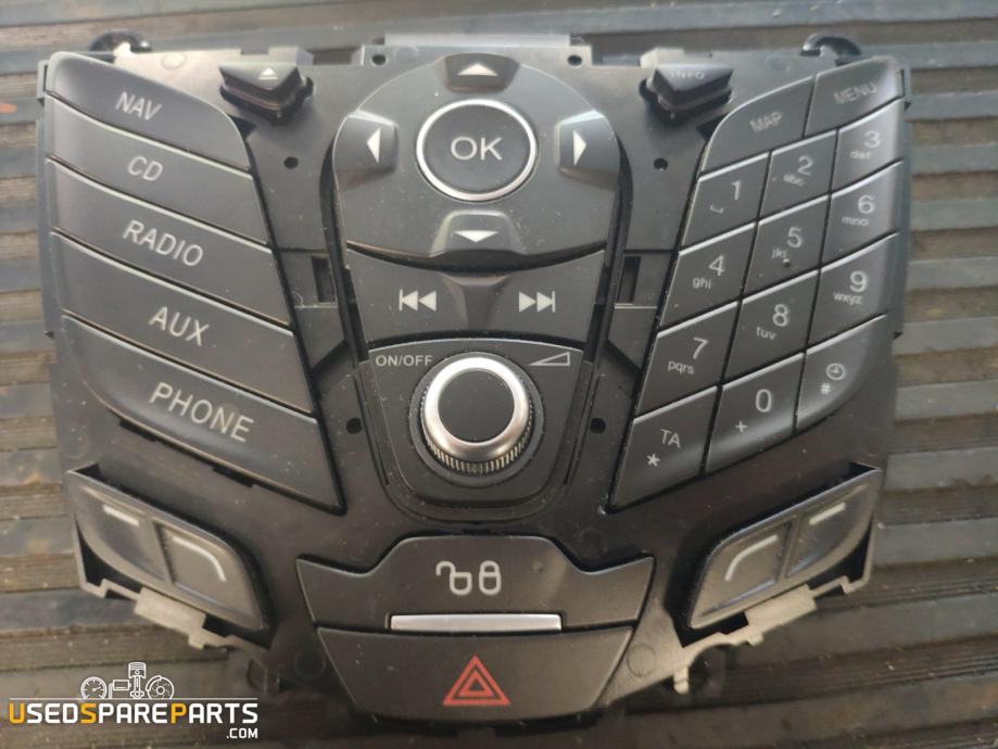 Radijska kontrolna plošča za Ford Fiesta MK7 iz leta 2012 je del avtomobilske elektronike, ki omogoča upravljanje z radijem in drugimi funkcijami. Ta del je pomemben za pravilno delovanje avtomobilskega sistema za zabavo in informacije. Part ID C1BT18K811RA označuje točno komponento, ki je potrebna za popravilo ali zamenjavo obstoječe enote. Plošča vključuje gumbe in kontrolne elemente za upravljanje z glasbo, navigacijo in drugimi funkcijami.Znamka: Ford