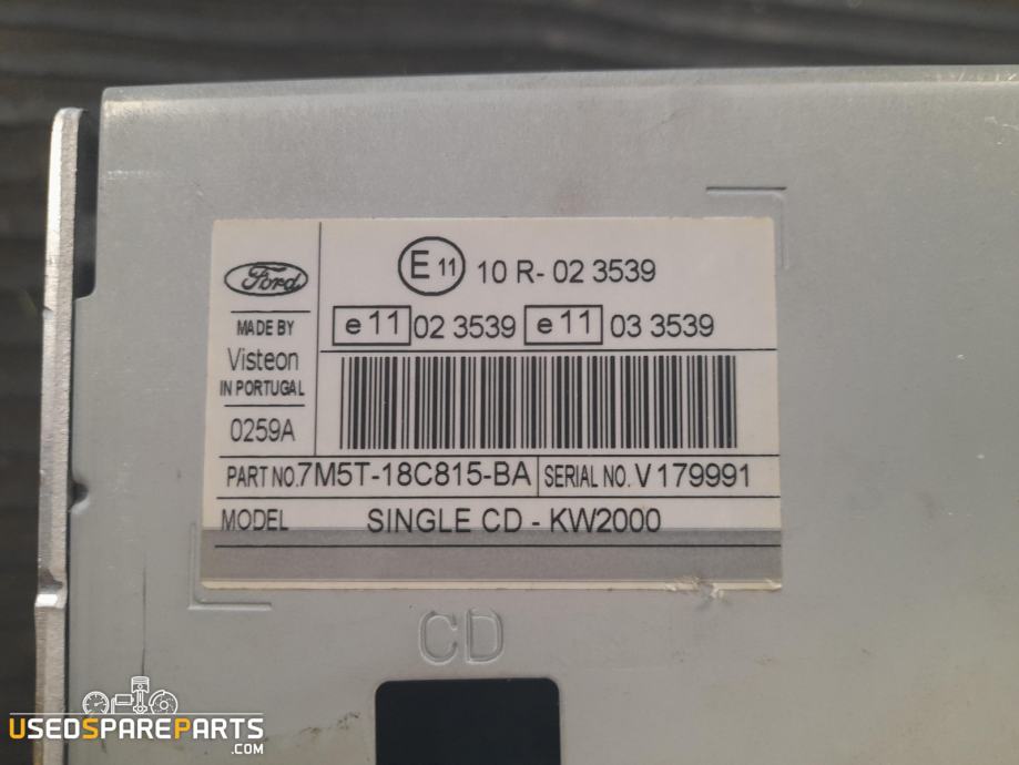 Radijski sistem z eno CD-predvajalnikom, ki je namenjen za vozila Ford Mondeo MK4 iz leta 2011. Ta sistem vključuje funkcije kot so predvajanje CD-jev, FM/AM radijski sprejemnik in podporo za povezavo z zunanjimi napravami preko Bluetooth. Sistem je zasnovan tako, da zagotavlja kvalitetno zvokovno izkušnjo in enostavno uporabo.Znamka: Ford