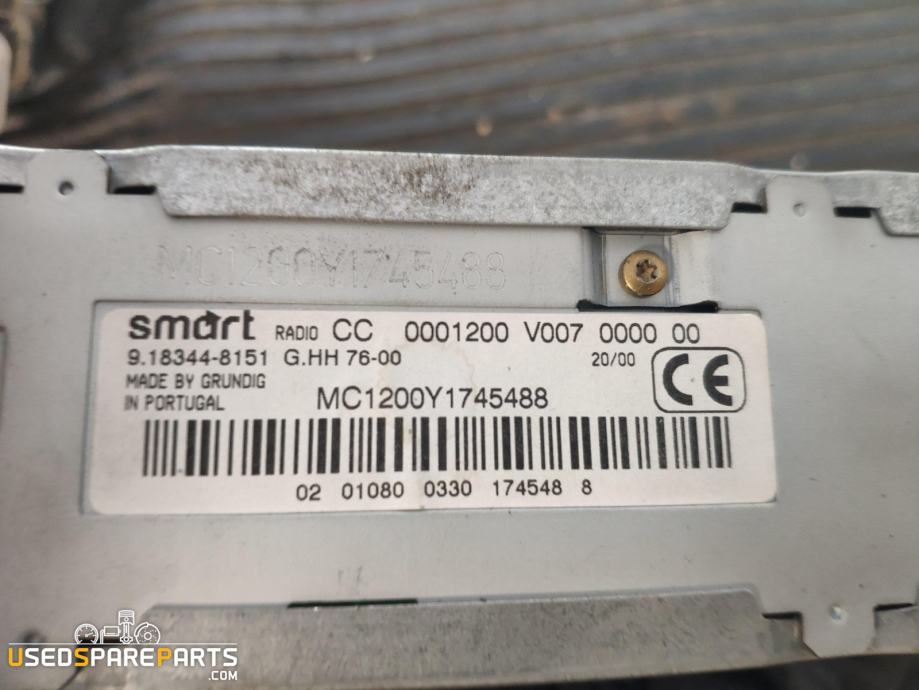 Radijski sistem za vozilo Smart 2001. Ta del je namenjen za uporabo v vozilu Smart 2001 in vključuje funkcije kot so sprejem radijskih postaj, predvajanje CD-jev in uporabo dodatnih funkcij kot so RDS (Radio Data System) in PTY (Program Type). Sistem omogoča tudi nastavitev različnih parametrov kot so glasnost, ton in izbira valovne dolžine. Radijski sistem je pomemben del avtomobilske opreme, ki omogoča voznikom in potnikom uživanje v glasbi in informacijah med vožnjo.Znamka: Smart