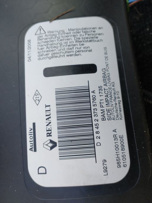 renault megane 3 2010 airbag v sedežu zračna blazina sedež zic levo de
