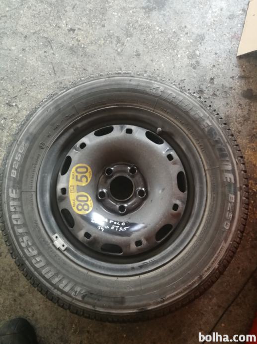 Prodam rezervno kolo pnevmatika z platiščem 14 col , Primerna za Volkswagen , Škoda , Seat , možno tudi po pošti , možna montaža , za več info pokličite