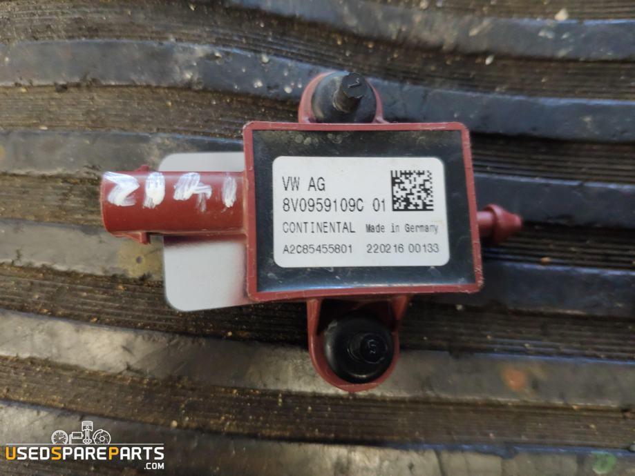 Senzor z oznako 8V0959109C je namenjen modelu Audi A3 e-tron, ki je priključni hibrid z 1.4-litrskim turbo bencinskim motorjem in električnim pogonom. Ta senzor je del elektronskega sistema vozila, ki spremlja in zagotavlja pravilno delovanje različnih funkcij, kot so upravljanje motorja, hibridni sistem in drugi elektronski nadzorni sistemi. Senzor omogoča natančno zbiranje podatkov, kar prispeva k optimalni učinkovitosti in varnosti vozila. Uporablja se v elektronskih komponentah, ki so ključne za delovanje hibridnega pogona in drugih sistemov v vozilu Audi A3 e-tron.Znamka: Audi